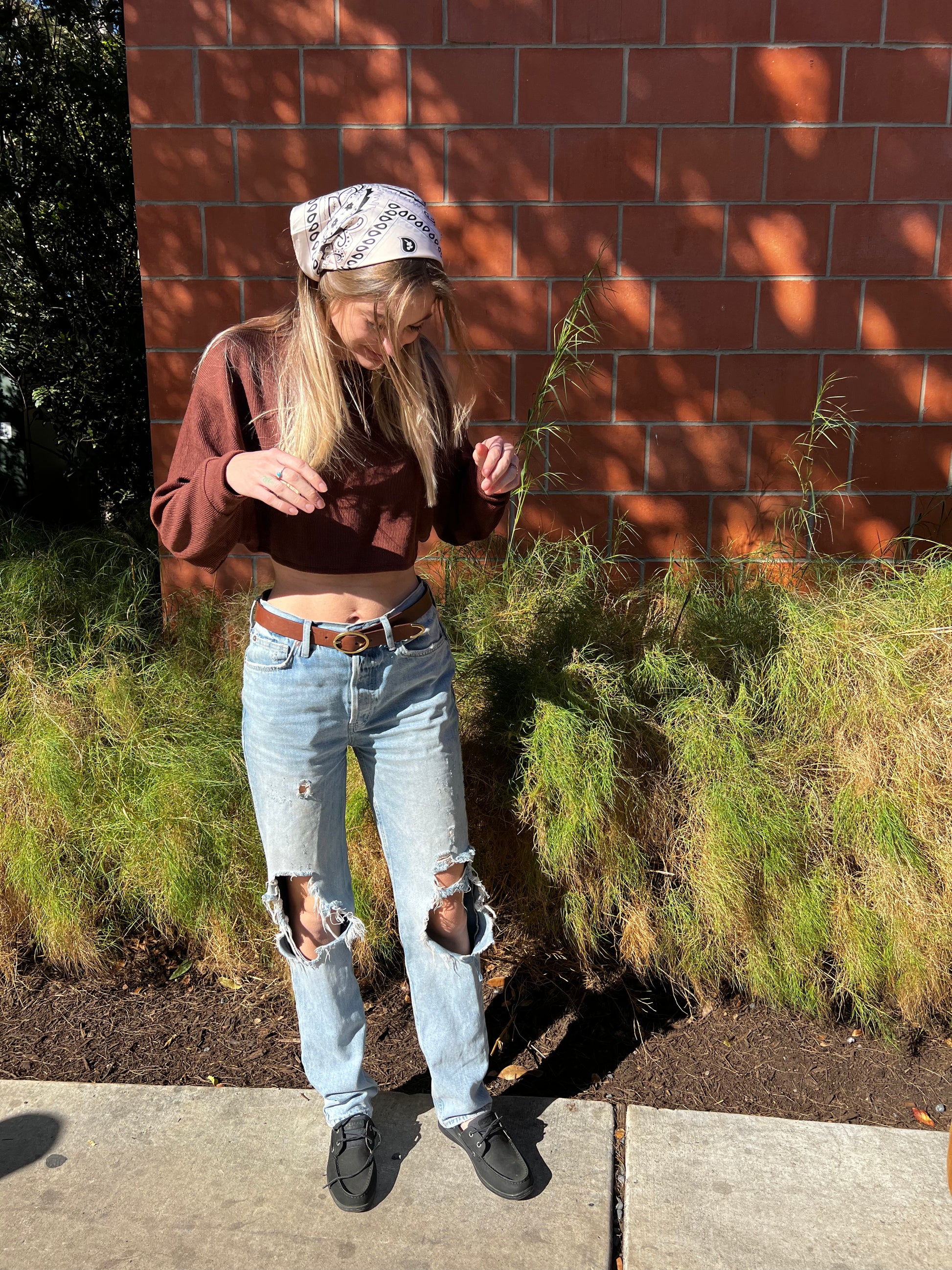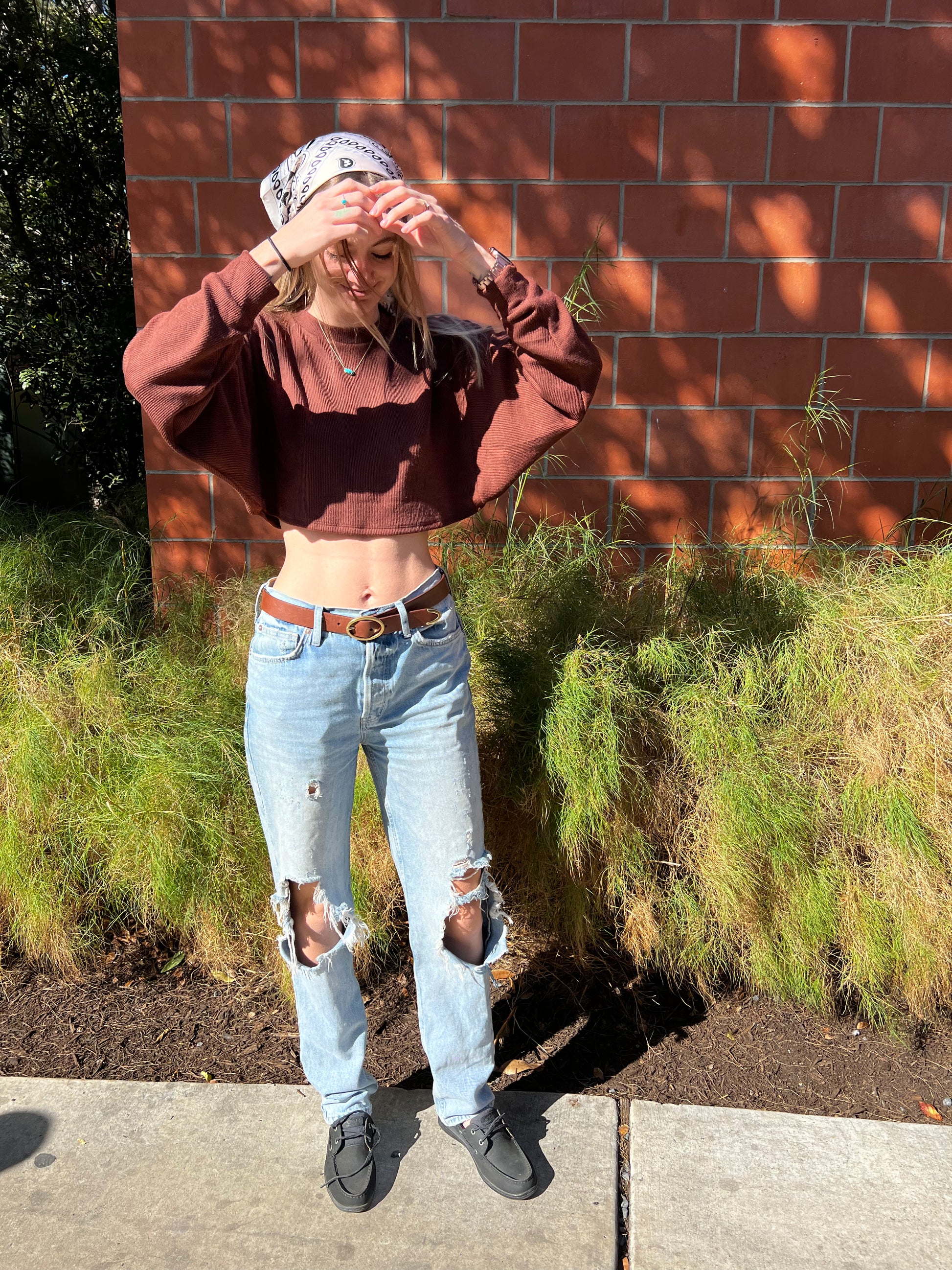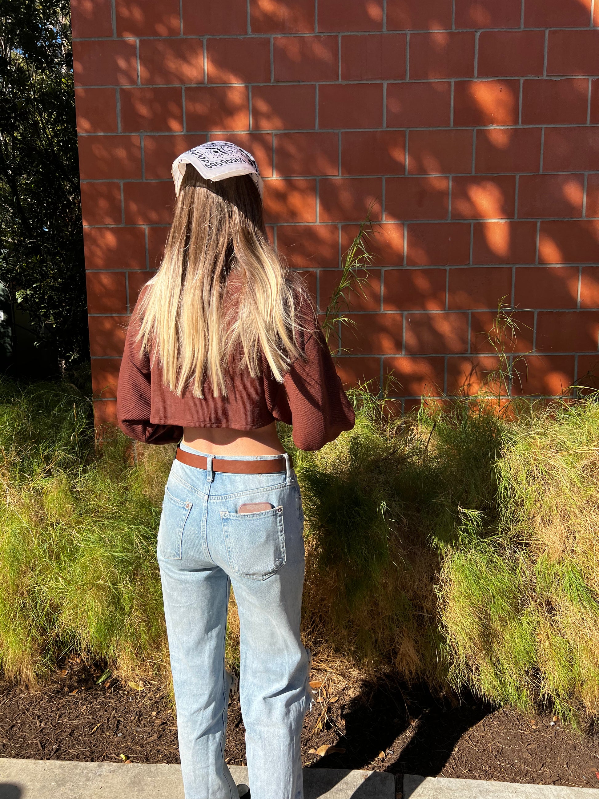 - Brown Cropped Sweater Top